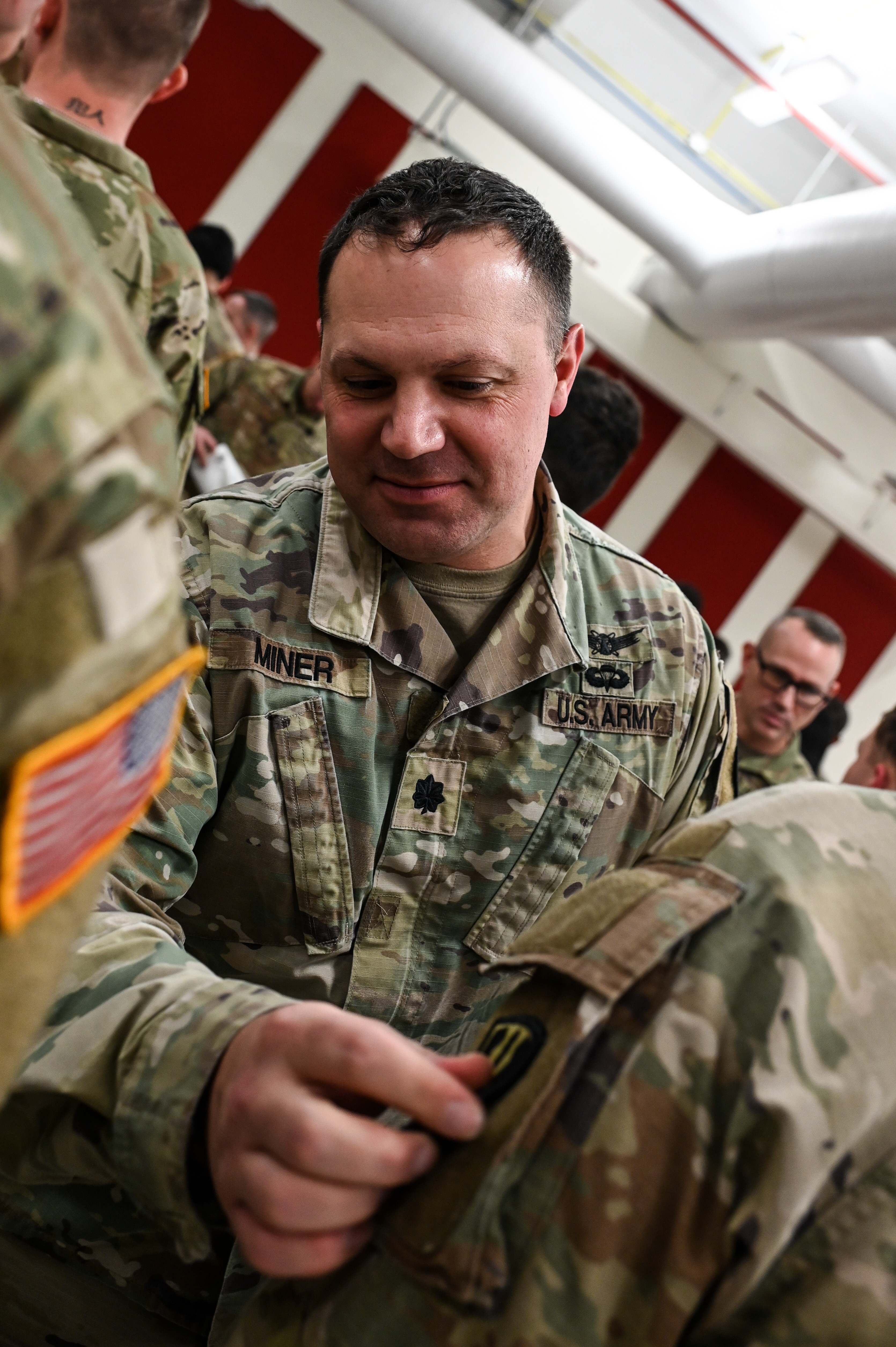 Finally, just before lunch, Soldiers are organized into tidy ranks based on their unit and welcomed to the force by one of the organization’s senior leaders. Each Soldier is then affixed with their first unit patch by a unit representative, marking their formal entry into the Virginia Army National Guard.