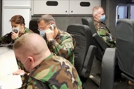 Members of the Virginia Defense Force augment the Virginia Department of Emergency Management Situational Awareness Unit at the Virginia Emergency Operations Center in Richmond, Virginia.