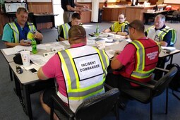 Participants in the ICS 300 course taught by Fort Pickett Fire & EMS work through a flood response scenario Oct. 3, 2018, at Fort Pickett, Virginia. (Photo courtesy Fort Pickett Fire & Rescue)