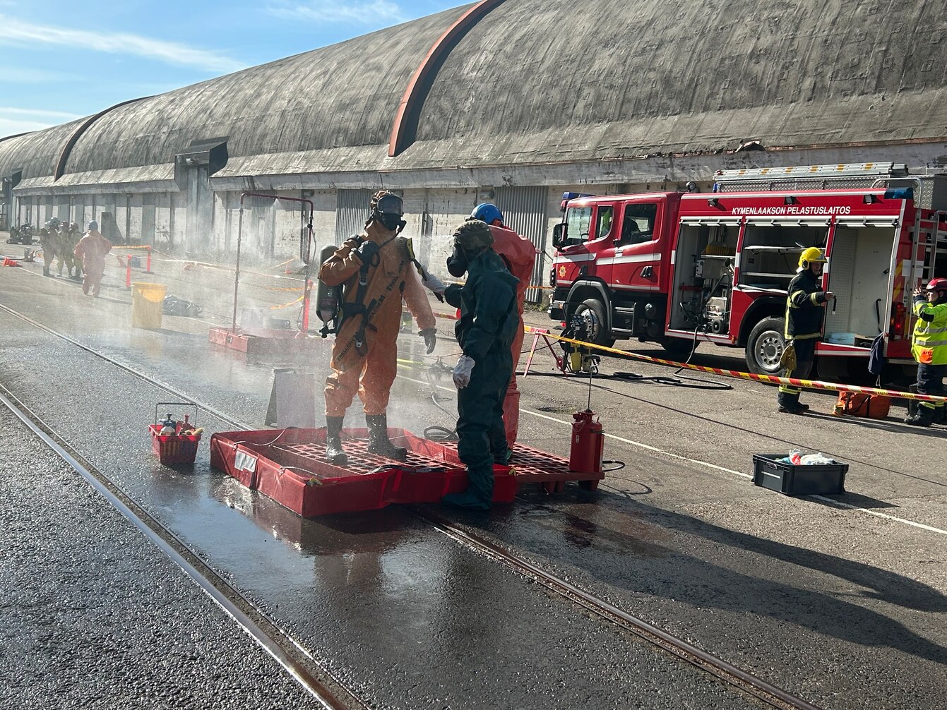 Virginia National Guard Soldiers assigned to the Troutville-based 229th Chemical Company, 329th Regional Support Group, and Fort Pickett-based 34th Civil Support Team conduct a chemical, biological, radiological, and nuclear exchange with members of the Finnish Defense Forces during Exercise Karelian Stronghold Sept. 1 - 5, 2025, near Helsinki, Finland.