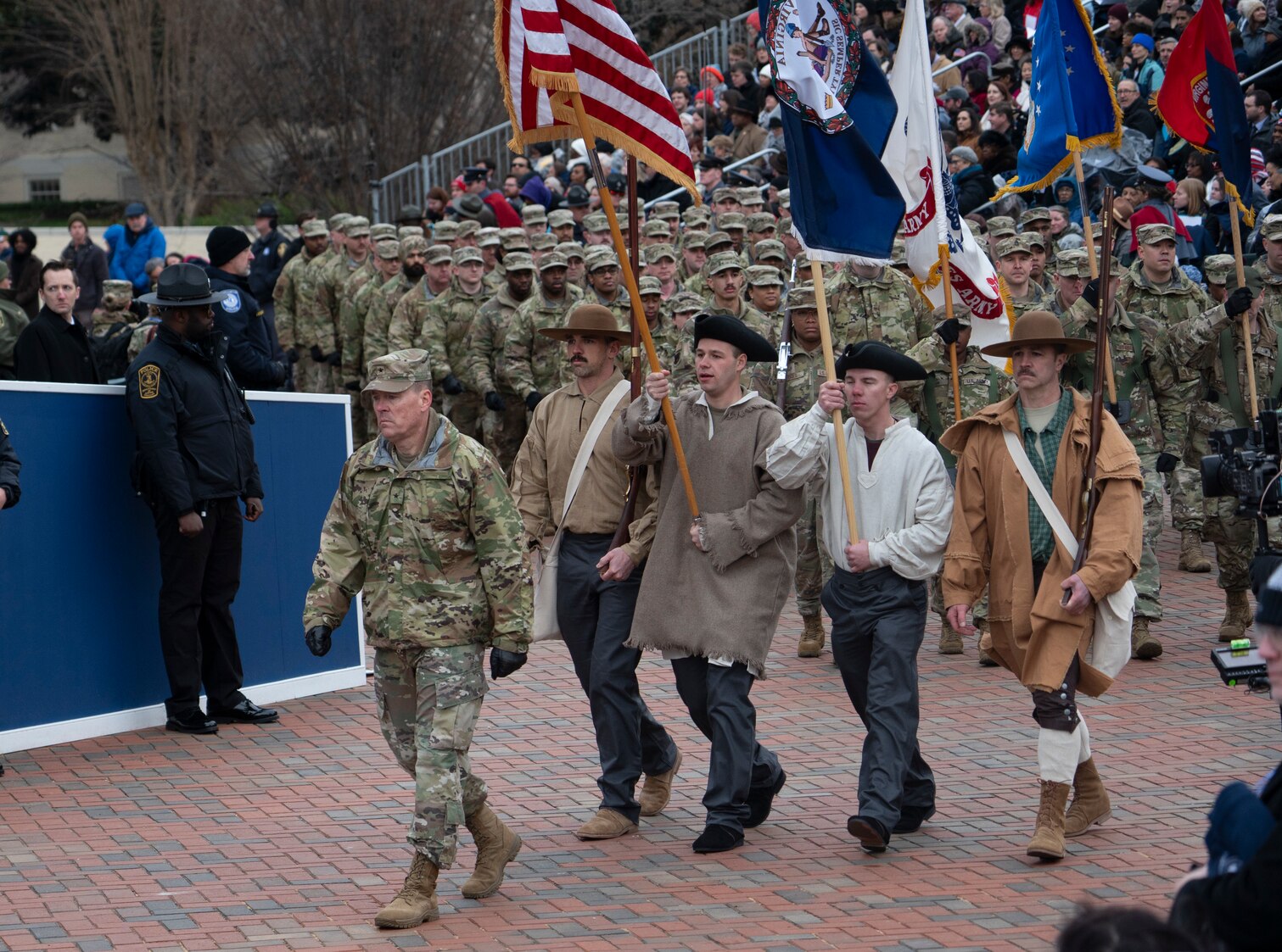Brig. Gen. Charles Martin Jr. and Command Sgt. Maj. Timothy Hawley, the Virginia Army National Guard command team, lead the marching formation of the parade at the inauguration of Abigail Spanberger as the 75th Governor of Virginia Jan. 17, 2026, in Richmond, Virginia. The formation consisted personnel from the Virginia Army National Guard and Virginia Air National Guard and a joint color guard featuring the U.S. and Virginia flags and the organizational colors of the U.S. Army, U.S. Air Force and Virginia Defense Force. VNG personnel also presented a historical color guard in Revolutionary War-style uniforms to commemorate the upcoming 250th anniversary of the nation’s independence. Read more at https://vngpao.info/ye2dnfbh.