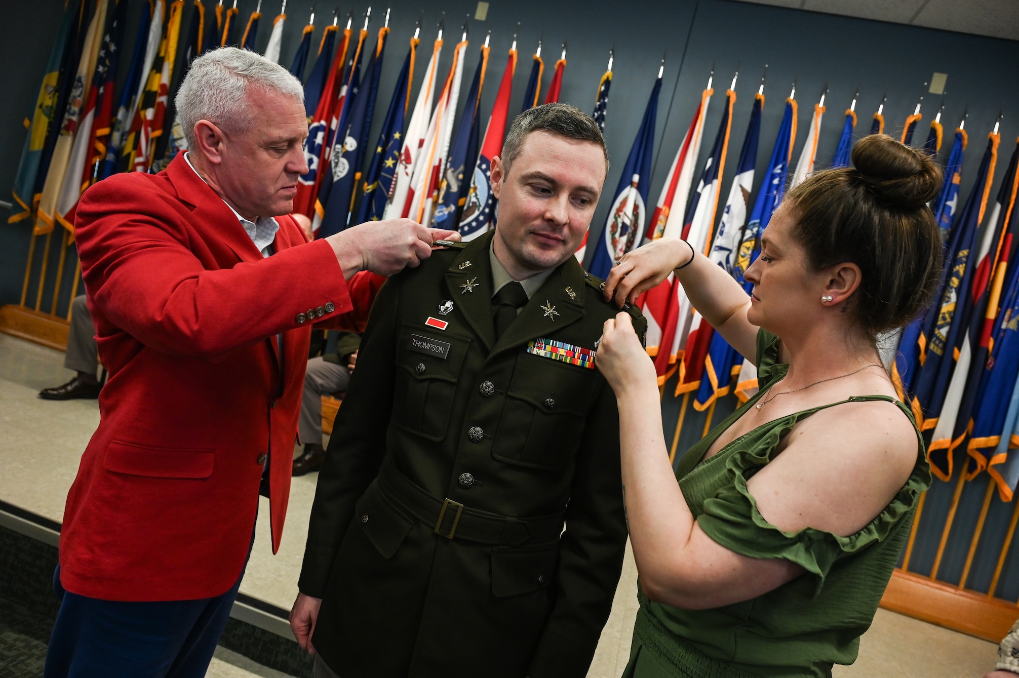 The Virginia National Guard’s Warrant Officer Candidate School celebrates the graduation of four new warrant officers in a ceremony March 8, 2026, at Fort Pickett, Virginia. The candidates took their oath of office and were then pinned with their new rank by family members, friends and mentors. Col. Beau Mason served as the guest speaker for the event. (U.S. Army National Guard photo by Sgt. 1st Class Terra C. Gatti)