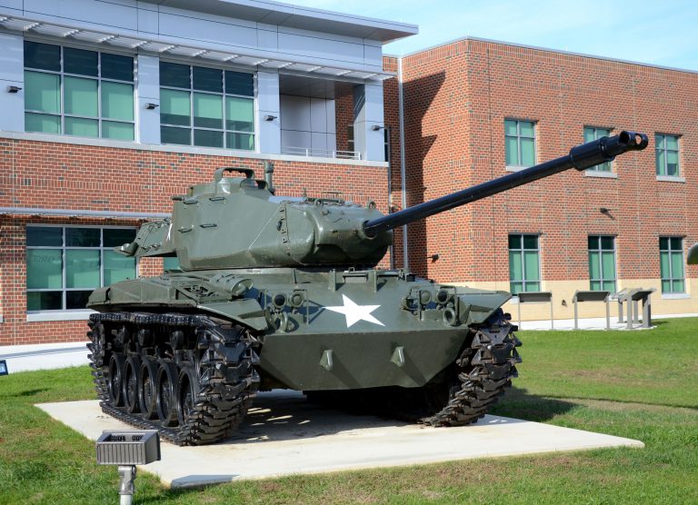 Front and center outside of the front entrance to the headquarters building is an M41 Walker Bulldog, an American-made light tank developed for armed reconnaissance and scouting. The Bulldog is named for World War II leader Gen. Walton Walker. VNG’s Armor units were equipped with the M41 Walker Bulldog in the 1960’s. This particular M41 is dedicated in honor of of all Virginia National Guardsmen who have served or are serving in calvary, ammunition train, convoy escort, combat engineer or armor units since 1916. Their unyielding devotion to their county, their state and their comrades is symbolized in the solid armor of this vehicle and its hard-hitting 76mm cannon.