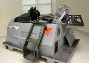 Tucked into the corner of the lobby inside the main entrance of the headquarters building is a F-16 cockpit trainer. The trainer was an invaluable training tool that familiarized pilots with normal and emergency procedures required for the safe operation of the aircraft. It allowed for over-the-shoulder instruction of pilots, preparing them for expected and unexpected situation in flight. The Virginia Air National Guard’s 192nd Fighter Wing received their first F-16 Fighting Falcon in 1991. After becoming fully operational with the F-16, the 192nd was chosen as the lead unit in a four-state Air National Guard F-16 “rainbow” detachment deployed to Incirlik Air Base, Turkey, to support Operation Provide Comfort II. During that operation in late December 1993 and early January 1994, pilots patrolled the no-fly zone over northern Iraq to prevent Iraqi forces from inflicting damage on the villages of Kurdish minorities. This was the first time Air National Guard units had been called to active duty to serve in a peacekeeping role in the Mideast, following Iraq’s defeat in 1991.